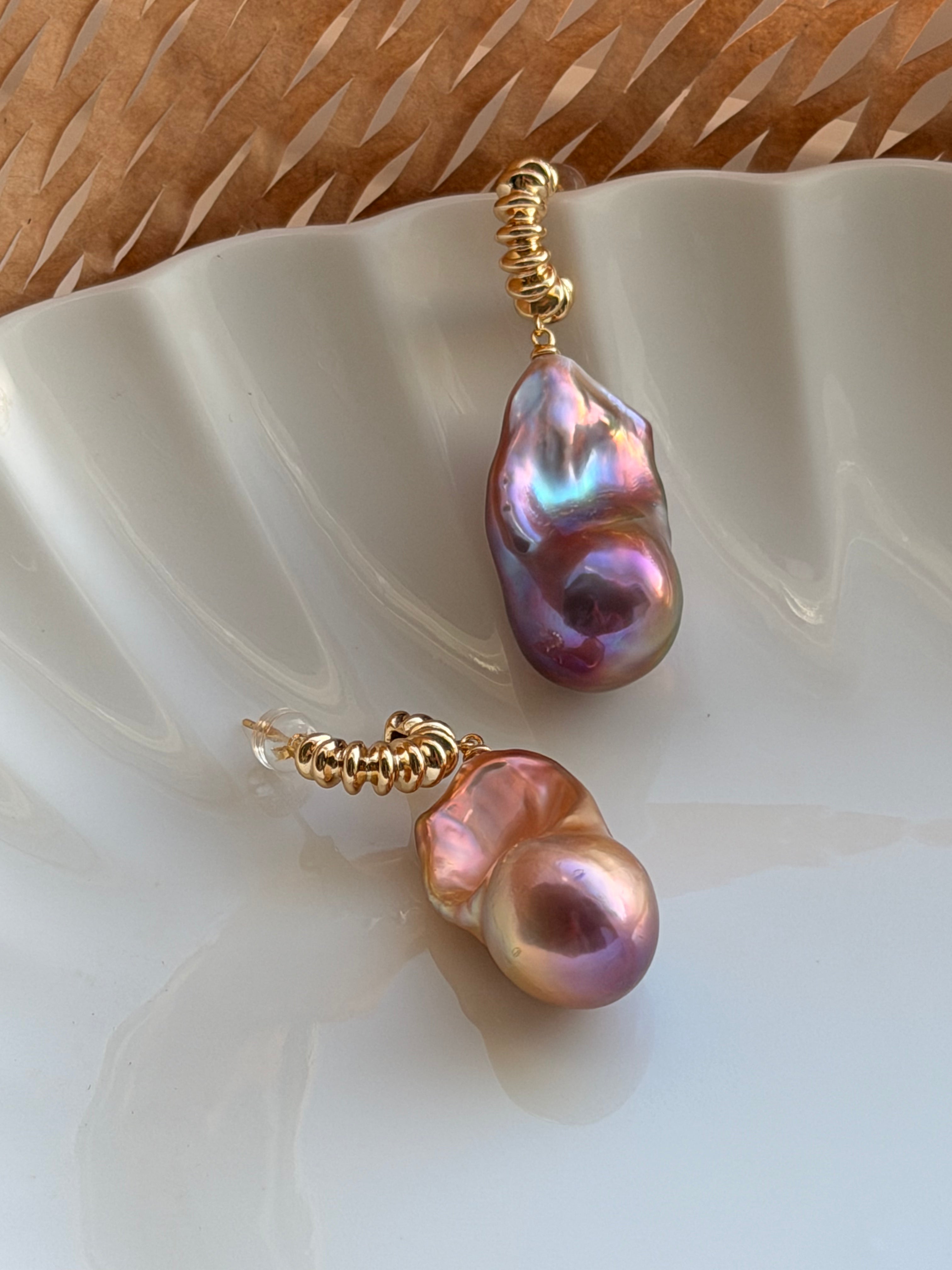 Iridescent petite baroques, each one-of-a-kind in color and form within the sunset palette (golden orange to pink-violet)